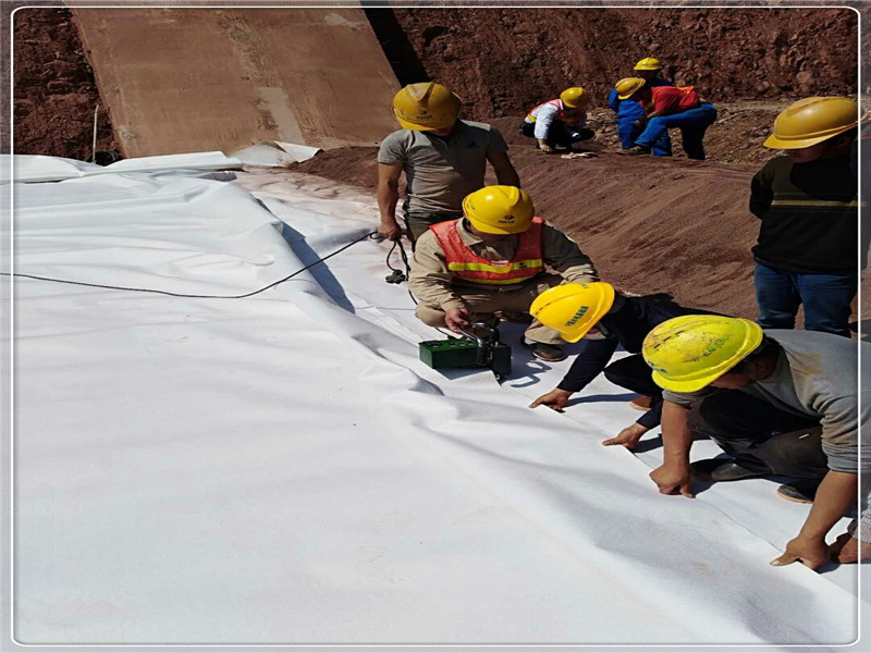 在此情況下,土工膜可能難以在砂墊層上維持穩(wěn)定,為此一些設(shè)計人員考慮采用放緩壩坡的方法。事實(shí)上,如果壩坡自身無穩(wěn)定問題,則可采取膠粘劑等措施增加土工膜與壩面墊層之間的黏結(jié)力即可。不同坡比的壩坡可選擇不同的固坡層和膠粘劑??砂慈缦路椒ㄟM(jìn)行設(shè)計施工: 先用碎石將上游壩坡找平,再用振動碾將壩坡碾壓密實(shí),然后澆筑6cm厚無砂混凝土; 在鋪設(shè)復(fù)合土工膜之前,刷乳化瀝青或熱瀝青,鋪膜后用輥筒輥壓或砂袋壓實(shí),使之牢固粘合。